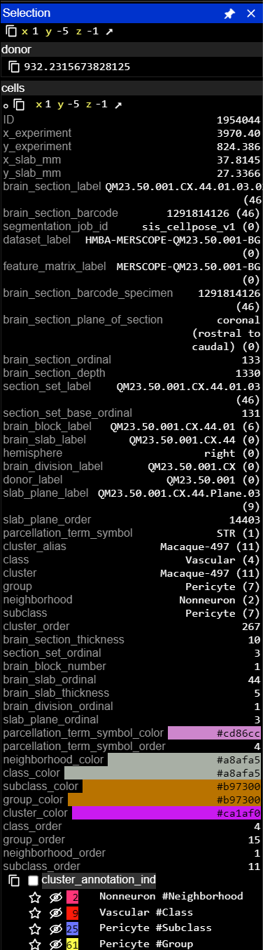 This view shows cells in the context of the imaging assets used for mosaicking (e.g., block-face and slab-face images).